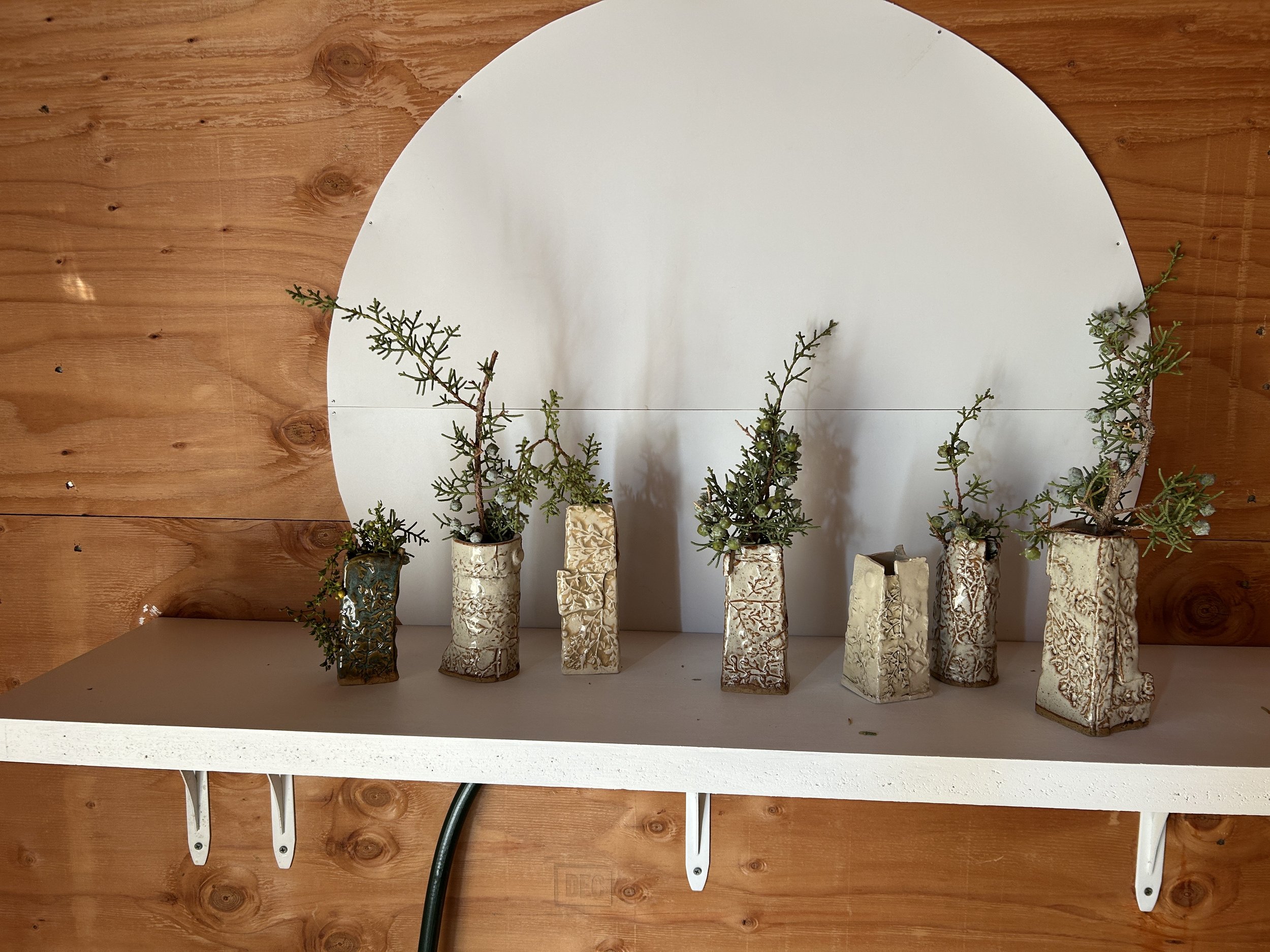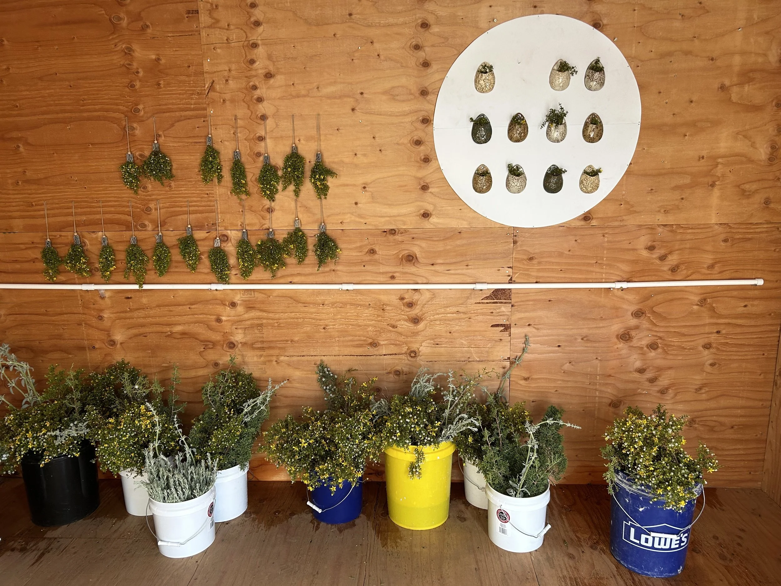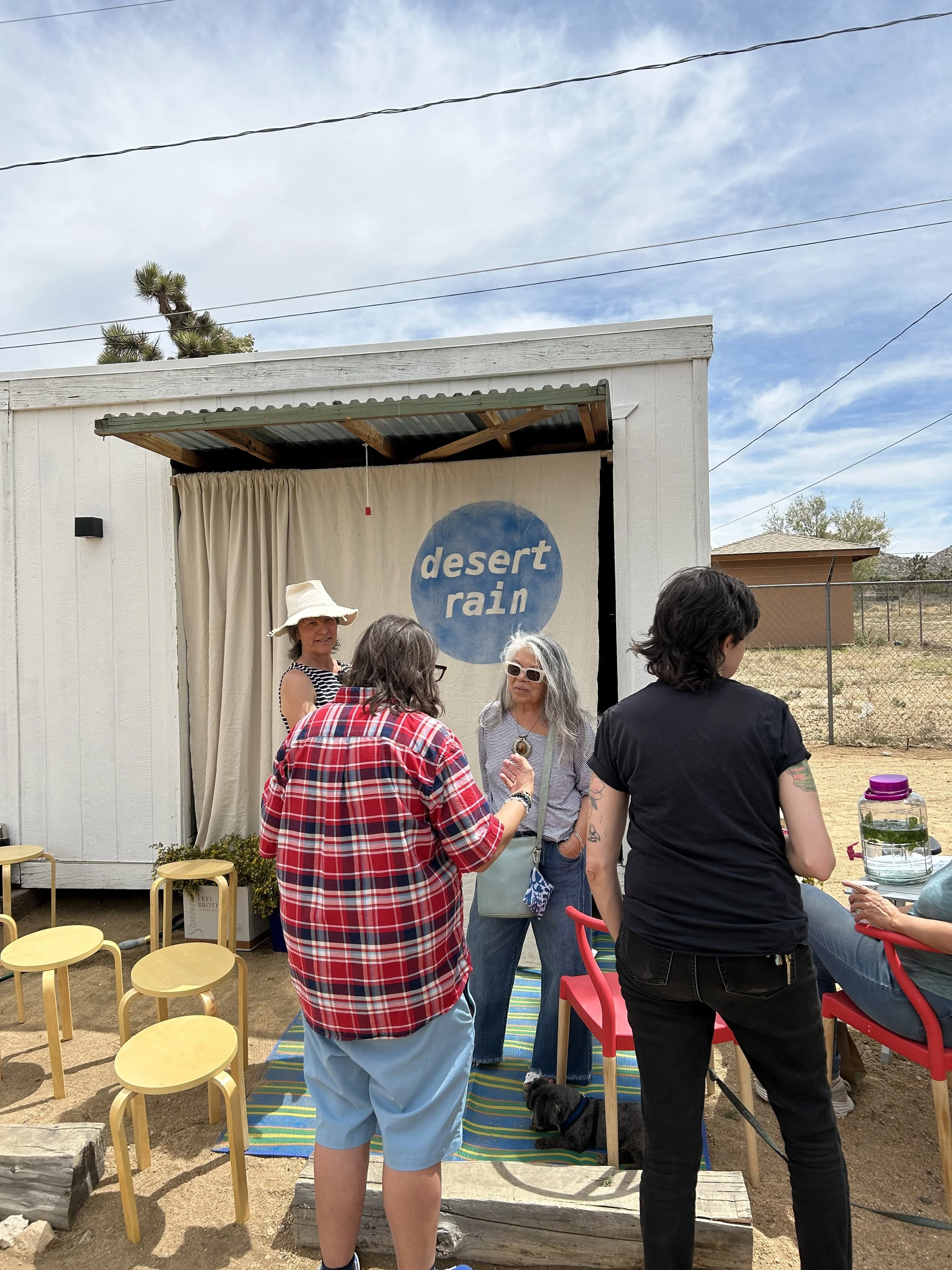 desert rain is a temporary “aroma spa” using water mist and creosote, juniper and sage cuttings gathered from my property as well as contributuion of the coummunity in Morongo Valley, pioneer town and Yucaa Valley. There is seating in the enclosed space for participants to spend some quiet moments breathing in the herbal atmosphere, which will simulate the wonderful scent of a rainy day in our beautiful environment. Thereare be small hand crafted items for sale that people can take with them to bring that scent into their homes.